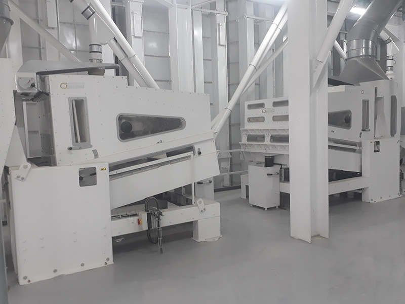 Working Principles Heavy and light wheat classification is made on the first screen. At the same time the parts are separated according to their weights. The second sieve the products by the first sieve come separately for different flux strength between heavy parts and stones. By vibration fall the stones from Sieve in the Dry Stoner area and the clean wheat are moving toward the product exit. The elimination of dust and bark like light Grain happening with air. The Fourclean F2 machine performs the following three steps: